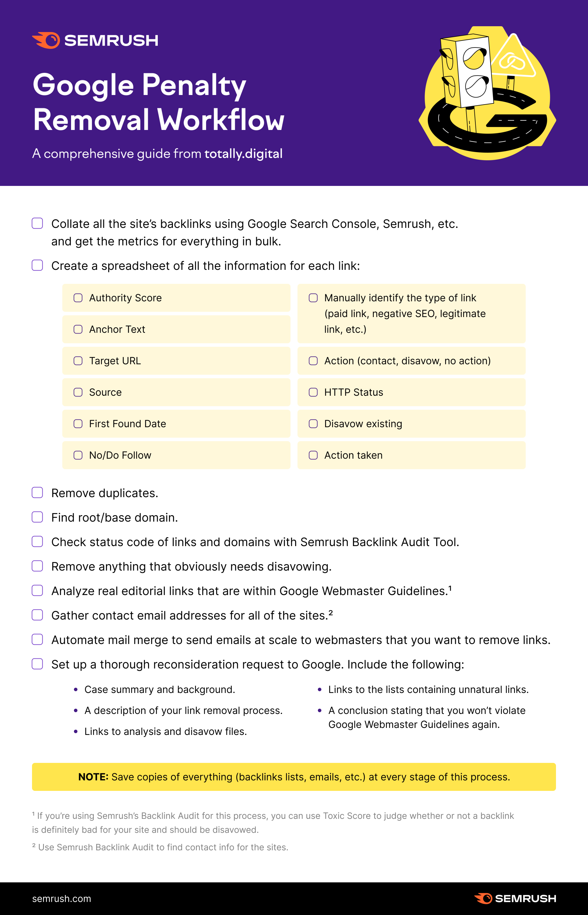 To restore their client’s site after this manual action, totally.digital followed a detailed workflow.
