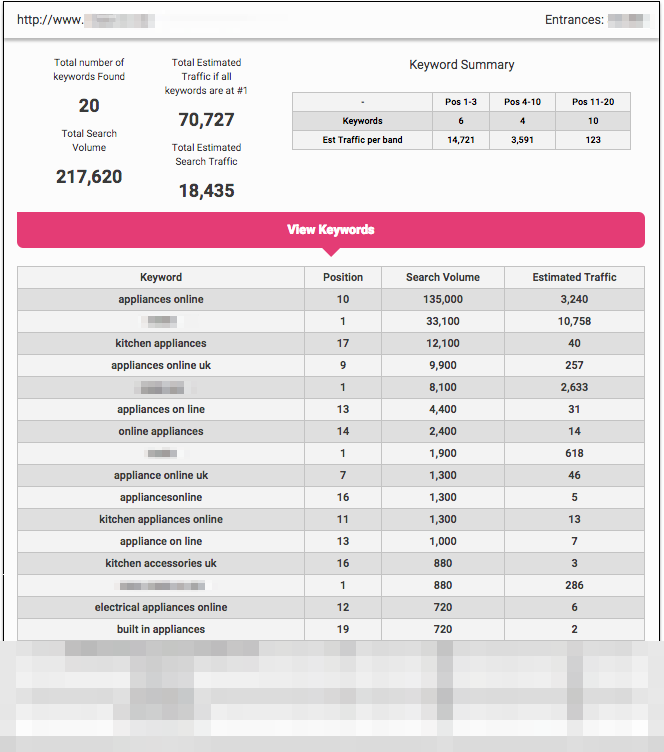 The first place that you should look to for keyword opportunities is the one place that is most often overlooked — your own website! Understanding what terms you are currently ranking for, and what traffic they are driving, should be your first port of call.
