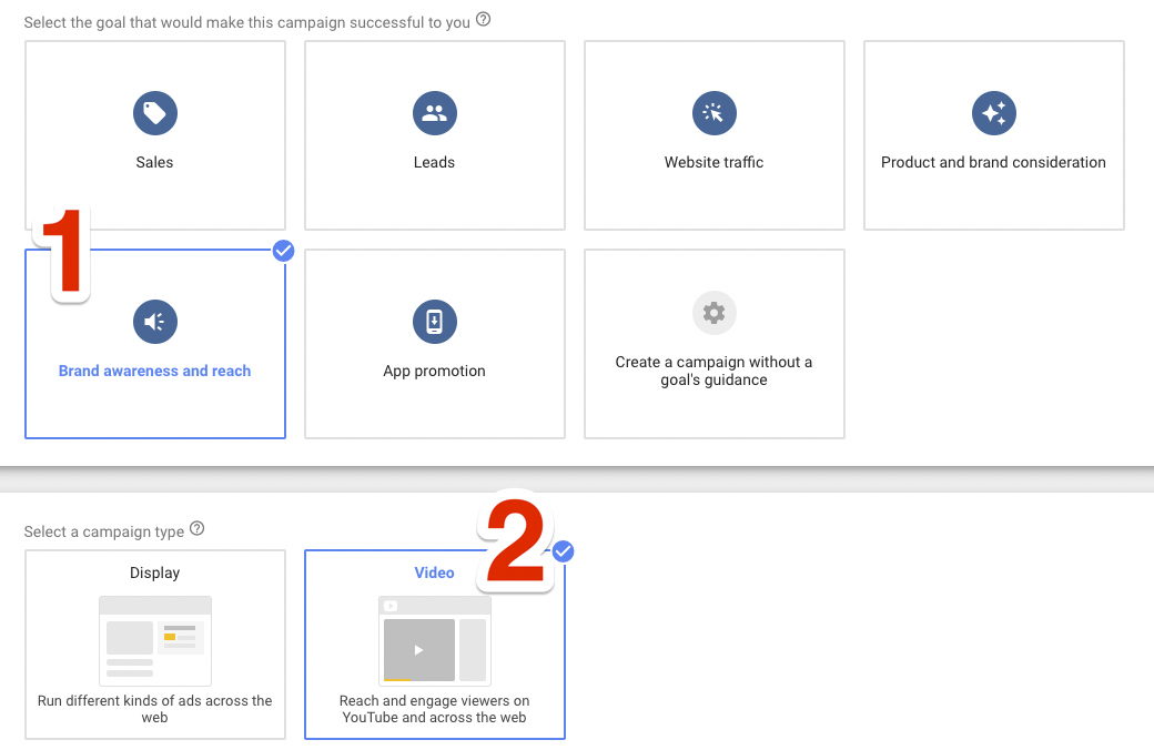 For the campaign type, select ‘Video’